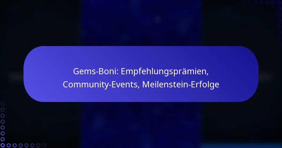 Gemeinschaftsveranstaltungen spielen eine bedeutende Rolle im Ecosystem der Gems-Boni, indem sie den Benutzern die Möglichkeit bieten, durch Teilnahme zusätzliche Gems zu verdienen. Diese Veranstaltungen können Wettbewerbe, Herausforderungen oder kollaborative Projekte umfassen, die die Interaktion der Benutzer fördern.